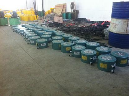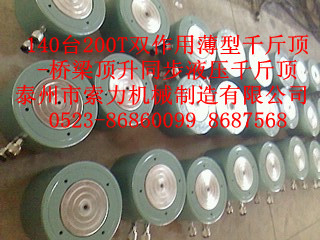 在2012年7月10號,泰州市索力機械制造有限公司與北京中交橋宇科技有限公司定下一份140臺200T雙向橋梁同步千斤頂(承載能力200T,本高150㎜,行程20㎜)的合同,這項合同是用一臺大功率大油箱的超高壓電動油泵帶動120臺千斤頂同時頂升三跨橋面的一個浩大工程。另有20臺頂備用。該公司去年十月剛訂購過40臺100T超薄橋梁同步頂。是與我們公司長期合作的一個忠實客戶。